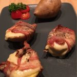 - Die Kartoffeln etwa 20 Minuten gar kochen. 2 ausreichend große Stücke Alufolie mit Olivenöl bestreichen. Auf die Folie werden jeweils zwei Scheiben Bacon nebeneinander gelegt und darauf je eine Kartoffel. Die Kartoffel längs tief einschneiden, aber nicht komplett halbieren.Vorsichtig etwas auseinander klappen, mit etwas Salz bestreuen, den Käse und Basilikumblatt hineinlegen und anschließend mit dem Bacon umwickeln.
