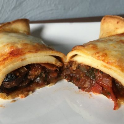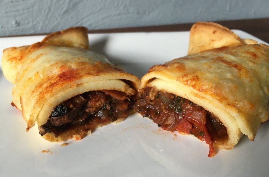 Gefüllte Pfannkuchen mit Pilzen und Tomaten