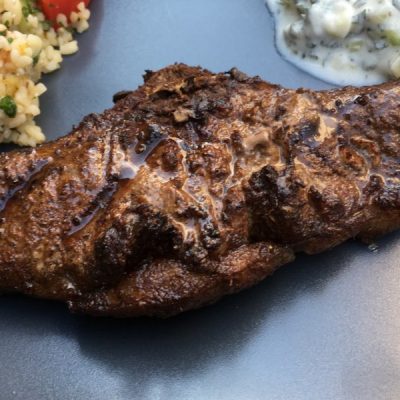 - Das Fleisch bei großer Hitze für ca. eine Minute von beiden Seiten angrillen, anschließend bei indirekter Hitze so lange weiter grillen, bis die Kerntemperater 80° C erreicht hat.