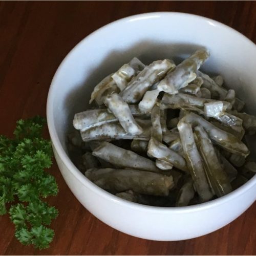 • Bohnen zur Soße geben und im Kühlschrank mind. 1 Stunde ziehen lassen.