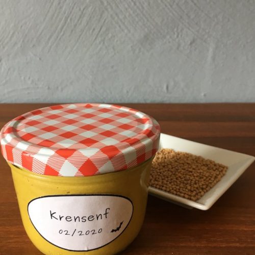 • Apfel schälen, fein rappen und mit dem geriebenen Meerrettich sowie den restlichen Zutaten zum Senf geben.