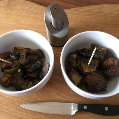 - Die Pfanne vom Herd nehmen, die Pilze mit der Marinade übergießen und gut durchmengen.