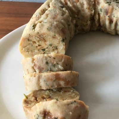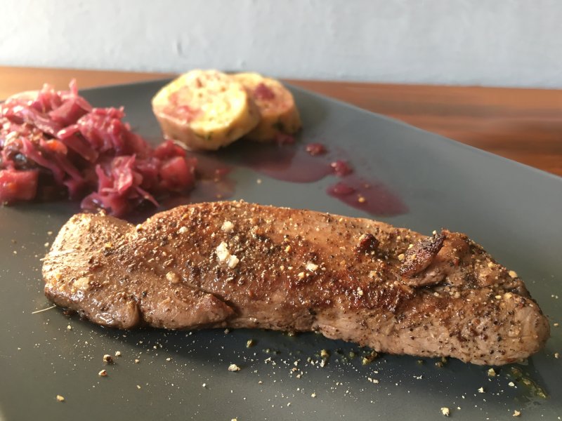 - Nach Ende der Garzeit die Knödelrolle aus dem Kochwasser holen und etwas abkühlen lassen, bevor Ihr ihn auspackt.Vor dem Servieren in Scheiben schneiden.Bon Appetit!